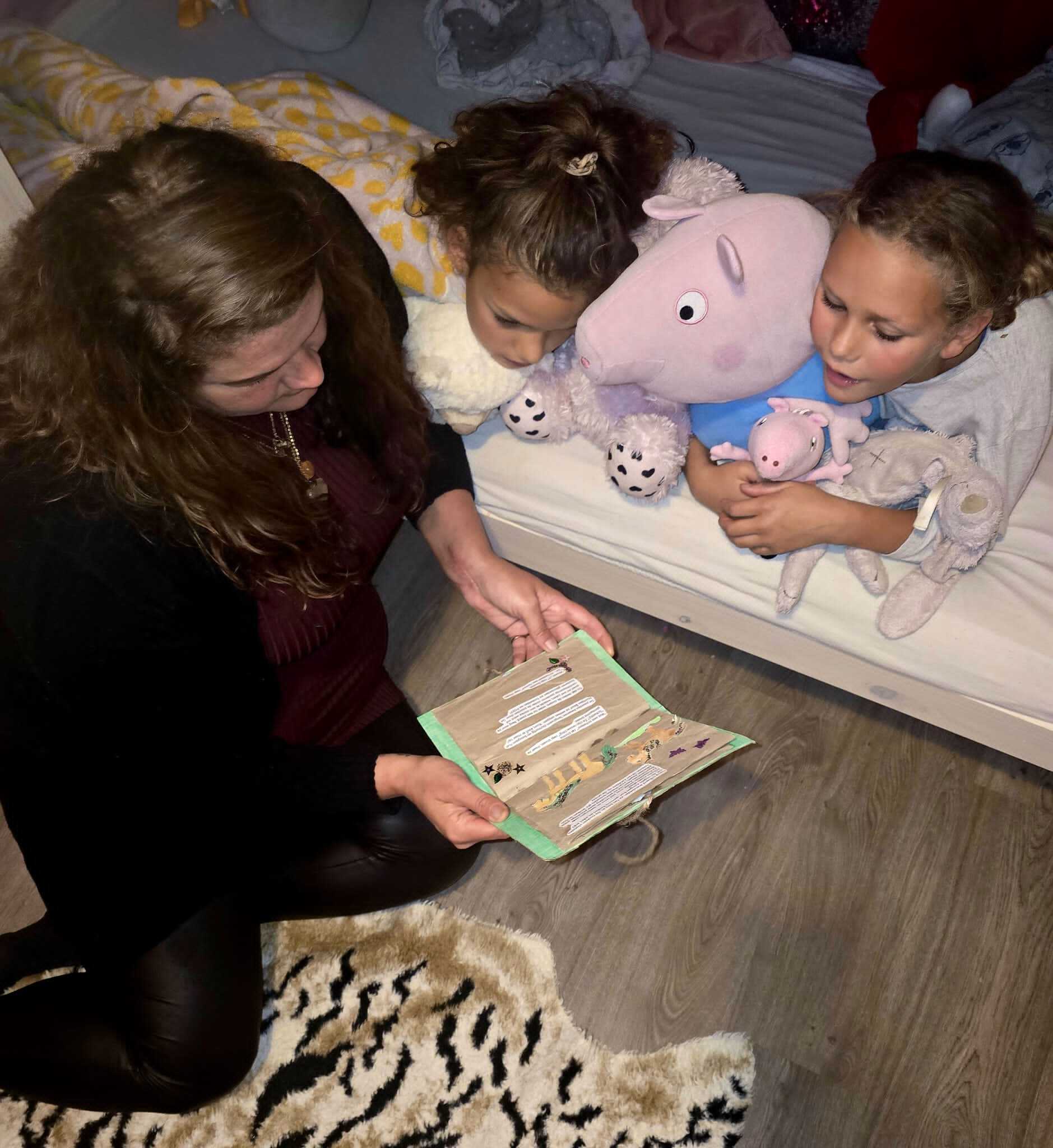 Orthopedagoog en behandelaar Christine las tijdens de behandeling een boek samen met een moeder en haar dochter. “Het was een fantastisch creatief boek,” meldde ze. “We hebben het samen lezen helaas niet op de foto gezet tijdens de behandeling, maar moeder stuurde nog een foto van het voorlezen voor het slapengaan. Echt een waardevol moment.”